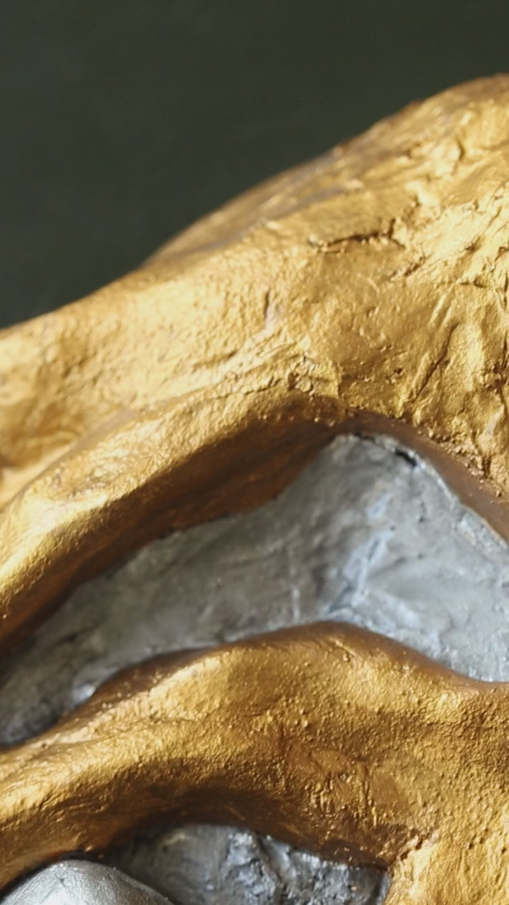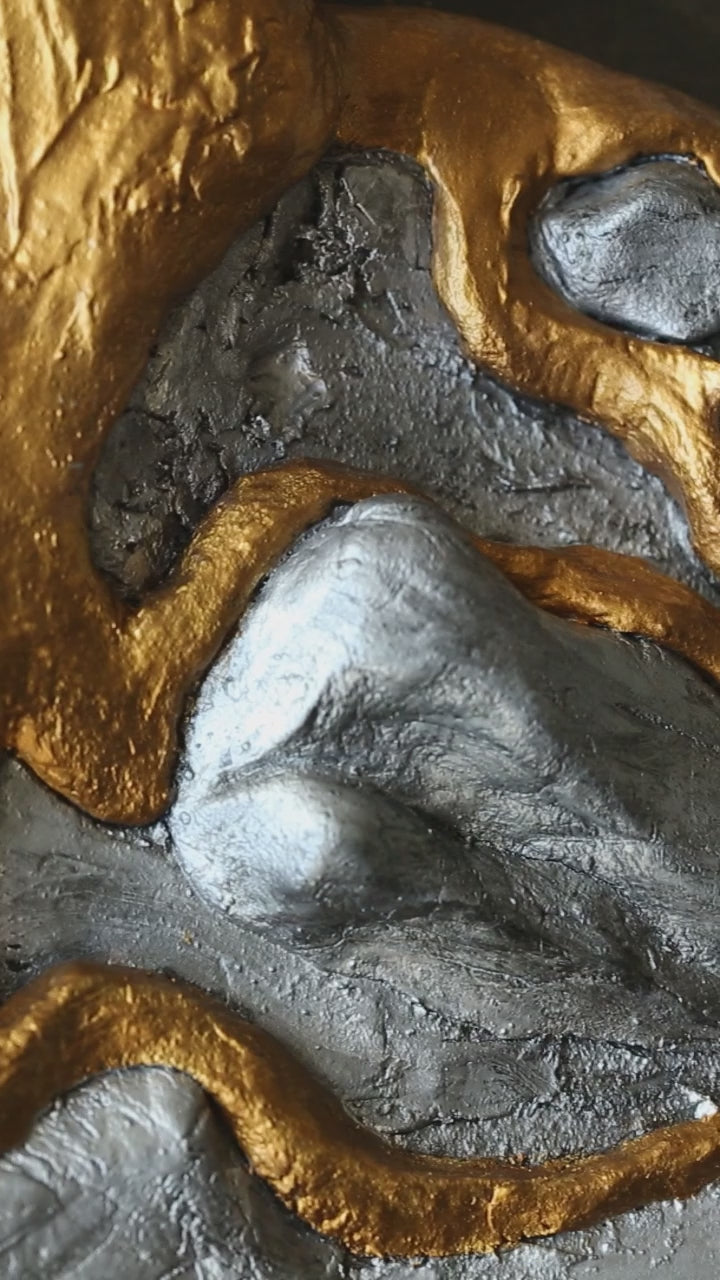 Medium: MDF board, metal mesh, gypsum putty, glass crystals, acrylic paint, pearlescent paint, gold leaf 24k, varnish, polymer clay