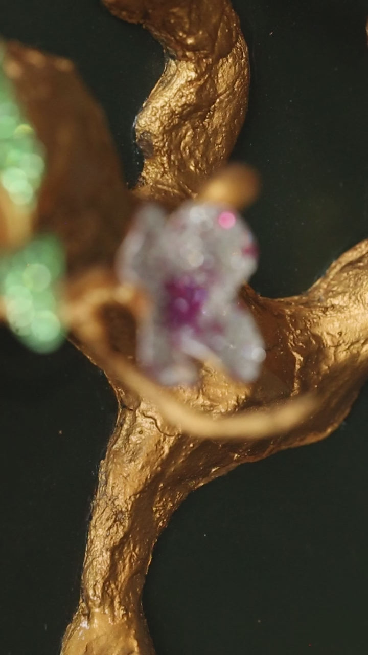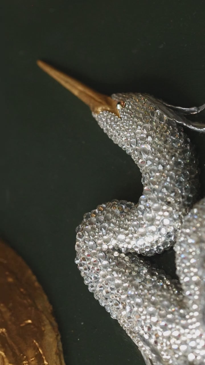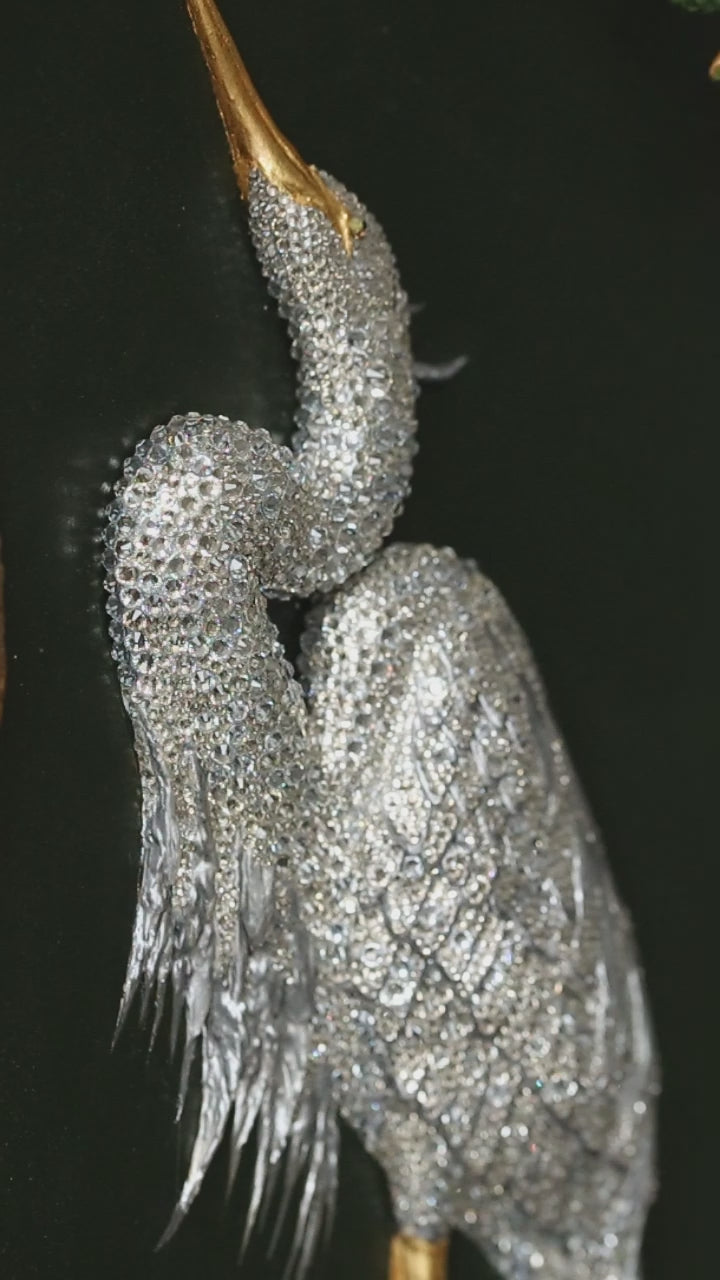 Today, I create large-scale artworks in the style of volumetric bas-relief combined with crystal incrustation in the technique of jewelry painting. Each work is executed with high precision, and the surface is meticulously decorated with crystals to impart depth, sophisticated light play, and exquisite brilliance. The main themes of my works are nature and the animal world.