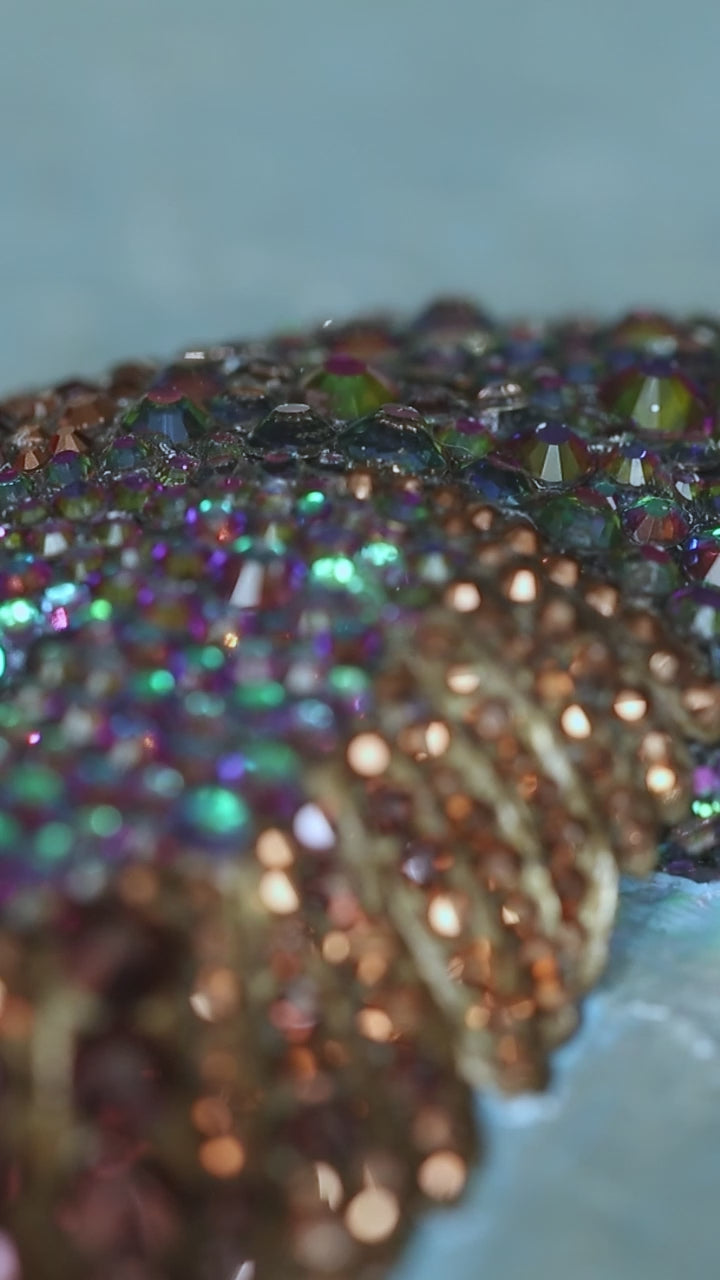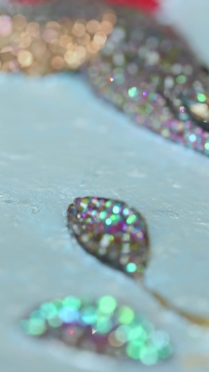 Medium: MDF board, glass crystals, acrylic paint, pearlescent paint, imitation gold leaf, varnish, polymer clay